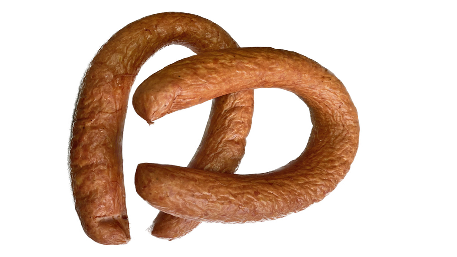 Варено-копченое колбасное изделие салями мясное. Колбаски «Деревенские» второго сорта